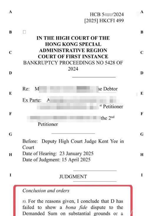 论断中写谈:债务东谈主(D)未能解释对所欠金额存在本体性争议,亦未建议有用抗辩,故本席颁布歇业令。
